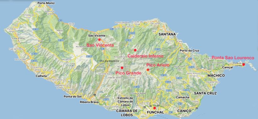 26.5.2012 Východní poloostrov Ponta Sao Lourenco. Vyhlídka Pico Serrado (1088 mnm), vesnice Curral Freiras, vyhlídka Ponta Rosto, lehká túra u nejvýchodnějšího mysu, koupání u pláže Prainha.