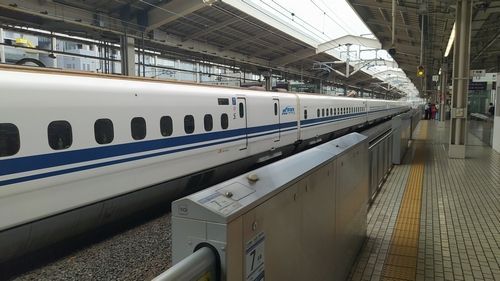 Po prohlídce pospícháme na metro, které má nás dovézt na nádraží, odkud jezdi jen šinkanzeny. V roce 2014 oslavily tyto rychlovlaky kulatých 50 let existence. Pohybují se po dvou hlavních japonských ostrovech Honšú (Tokio, Ósaka, Hirošima aj.) a Kjúšú (Fukuoka, Nagasaki). Nepatří už k nejrychlejším vlakům světa, ale jízda v nich je zážitek. Vlak má 16 vagonů a od jednoho konce na druhý se nedá dohlédnout. Na nástupišti se musíte postavit do fronty v místě, kde budou dveře vašeho vagonu. Na obou koncích má rychlovlak stejnou řídící jednotku. Povolená rychlost je 320 km/h. Vzdálenost 420 km ujel náš šinkanzen za hodinu a půl.