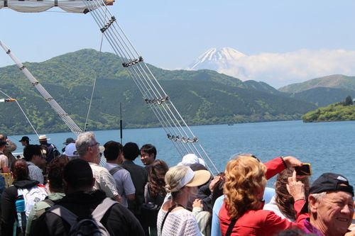 V osm hodin jsme se vydali na metro a tímto dopravním prostředkem po několika přestupech až na nádraží, kam měl přijet místenkový vlak z Onasi-Hakone. Když pasažéři z vlaku vystoupili, tak naběhla skupina uklízečů, aby zlikvidovala případné odpadky. Je zajímavé, že v Japonsku nejsou nikde odpadkové koše, na druhé stráně se ale nikde odpadky nepovalují. Když bylo uklizeno, tak vlakový systém otočil všechny sedadla do směru Onasi-Hakone a my mohli nastoupit. Cesta trvala dvě hodiny. Po dojezdu jsme přestoupili do autobusu, který nás zavezl k jezeru Aši