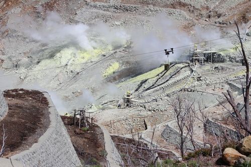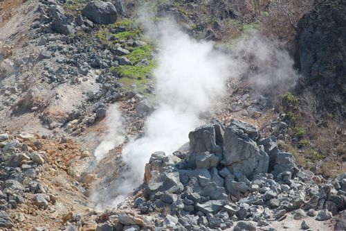 Tam jsme přestoupili na autobus, který nás vyvezl k nástupní stanici vysokohorské lanovky. Zde jsme si prohlédli lávové pole, fumaroly, poobědvali vajíčka černé barvy, uvařené ve fumarole a pokochali se pohledem na Fudži.