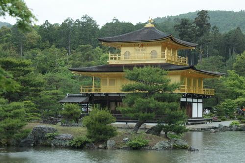 V Kiótu jsme přestoupil na okružní autobus, který nás zavezl ke Chrámu zlatého pavilonu. Budova byla postavena v roce 1397 a měla sloužit jako obydlí pro rezignovavšího šóguna Ašikaga Jošimicua. Jeho syn přeměnil budovu v buddhistický chrám patřící zenové sektě Rinzai. Chrám byl několikrát běhen válek vypálen. Svatostánek je obklopen krásnou zenovou zahradou.
