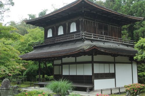 Stříbrný zenový chrám se nachází úplně na druhé straně města v pohoří východních hor Kjóta Higašijama. Byl postaven v roce 1474 šógunem Jošimasou Ašikagou, který se snažil napodobit zlatý Kinkakudži postavený jeho dědem Jošimicuem Ašikagou. Původním záměrem bylo pokrýt celý pavilon stříbrem, ale díky zhoršující se situaci ve válce Ónin, která vypukla v roce 1467, byla stavba zastavena a Stříbrný pavilon zůstal bez stříbrného pokrytí