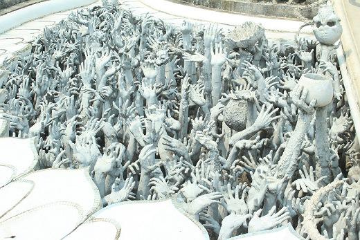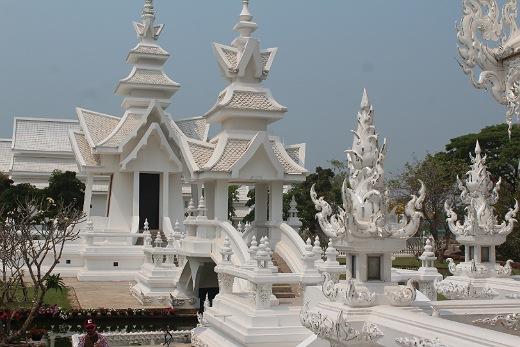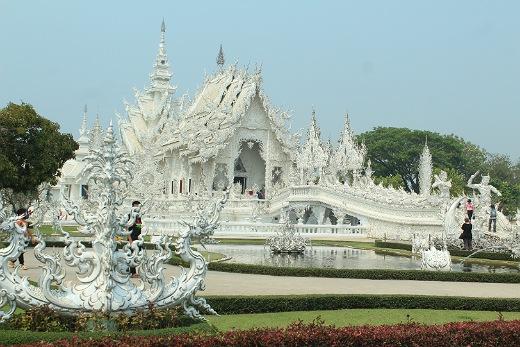 Další zastávka byla u Wat Rong Khun (tzv. „bílý klášter“). Je to perfektně udělaný umělecký kýč. Má vyjadřovat lidskou slabost - honbu za mamonem místo duchovního rozjímání.
