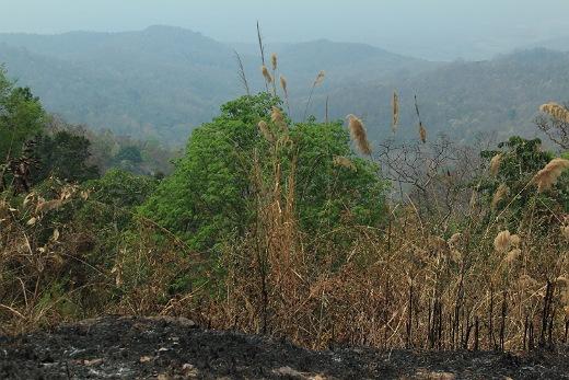Odtud jsme se vydali suchým pralesem do vesnice horských kmenů Hmong/Mae. Cesta z kopce do kopce trvala kolem dvou hodin.