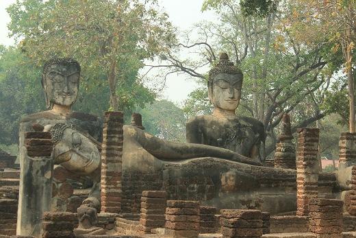Na programu dnešního dne byla prohlídka bývalého královského města Sukhothai . Je to ohromný chrámový komplex Wat Mahathat - duchovní epicentrum města, panovníkův chrám, Wat Sri Sawai - původně hinduistická svatyně přestavěná na budhistickou, Wat Trapang Ngoen - rozvaliny čedí, botu a vinárna u „stříbrného jezírka . Bylo toho opravdu strašně moc. Prohlídka trvala téměř osm hodin. Zde je jen pár ukázek.
