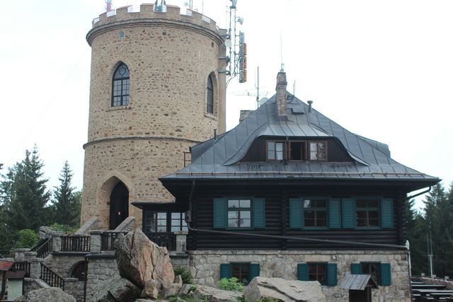 Na vrcholu je hotel, ale ten byl rovněž zavřený. Pití se ale dalo koupit v automatu, tak jsem zakoupi pivo. Než jsme se vydali na zpáteční cestu, tak jsme ještě "vyšplhali" na rozhlednu. Bylo to jen pár schodů a vstupné bylo na kartu.