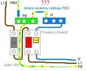 Proč ho nelze použít proudový chránič pro PEN, neboli TN-C síť? Proudový chránič potřebuje zem, aby mohl měřit únik proudu skrz zem. Jakmile je nula spojená se zemí před proudovým chráničem a za ním je spotřebič, tak se fázové napětí svádí na potenciál země tak na nulu. Na zemi není napětí, jenže pokud se přeruší nula a před tím porušením je nula se zemí spojená, tak napětí jde z fáze přes proudový chránič, nulou přes prouďák zpět a jelikož je nula rozpojená tak se napětí dostane pomocí PE vodiče zpátky.