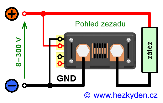 Měření proudu je tak jako u všech ostatních měřáků opět v záporné větvi.